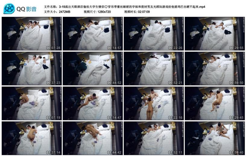 【影片名称】:天眼酒店偷拍大学生情侣❤️穿吊带蕾丝睡裙的学妹和废材男友光顾玩游戏给他搓鸡巴也硬不起来