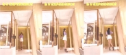 合租房冒死门缝偷窥❤️对门的美女洗完澡出来换衣服身材还挺不错